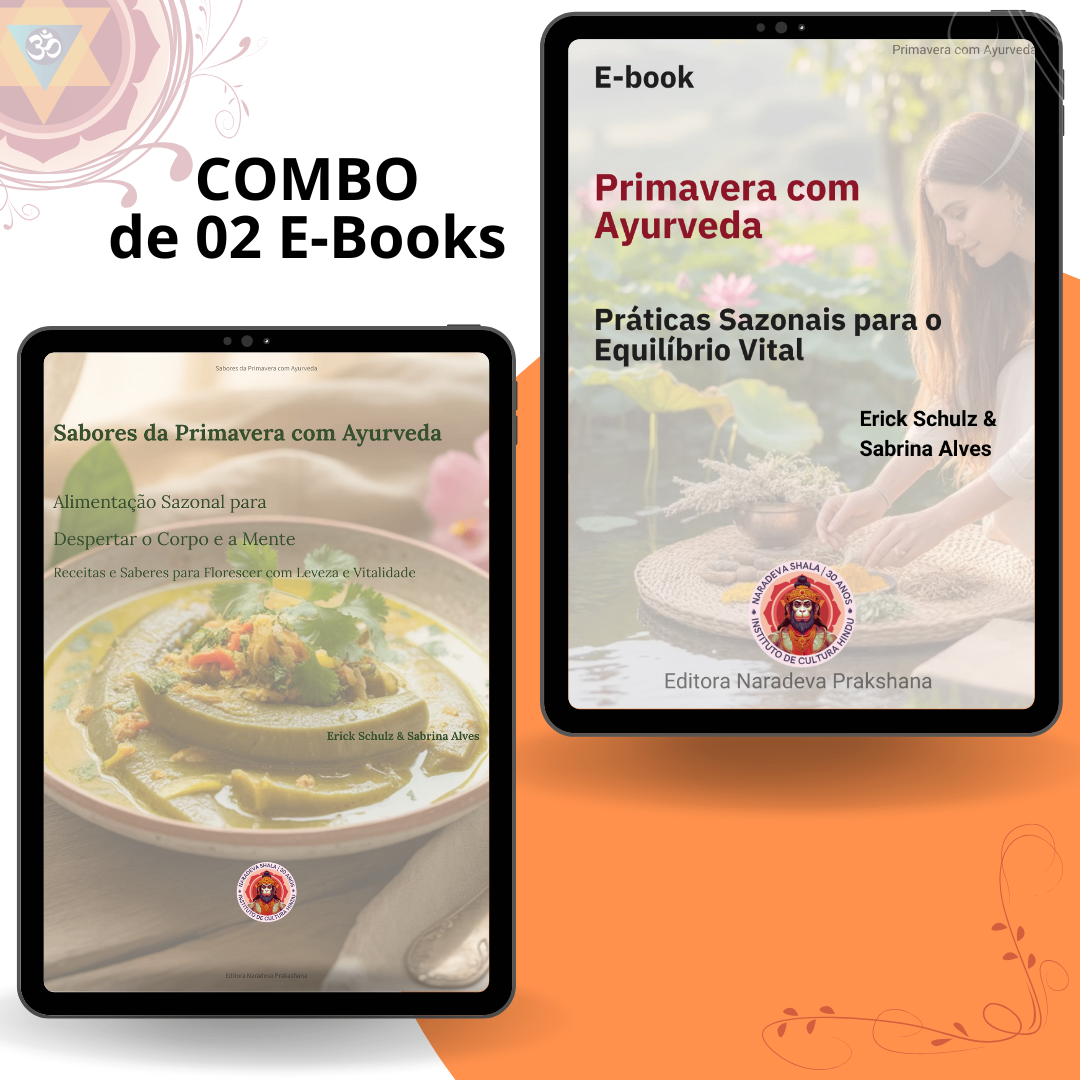 O Ayurveda, ciência milenar da vida, ensina que cada estação afeta de forma única nossos doṣas (biotipos corporais e mentais). Este combo reúne dois e-books complementares para você atravessar a primavera com equilíbrio, vitalidade e alegria.